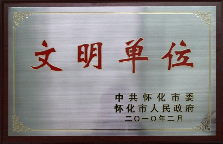 2010年2月乐竞官网被中共怀化市委、市人民政府评为“文明单位”