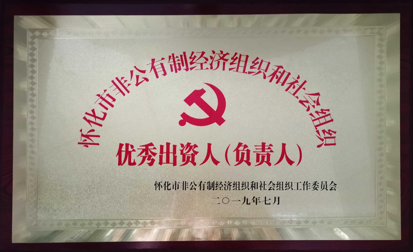 2019年7月被怀化市非公有制经济组织和社会组织工作委员会评为“怀化市非公有制经济组织和社会组织优秀出资人(负责人)”