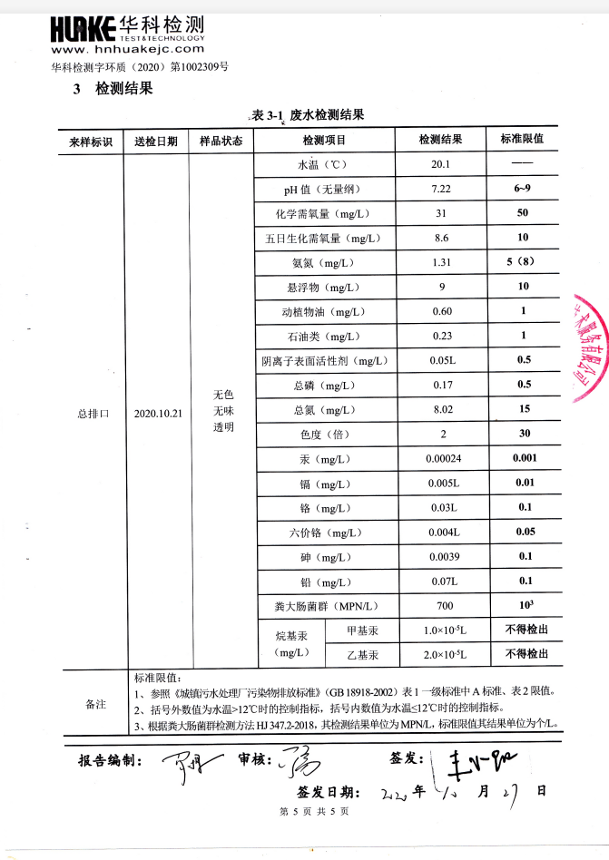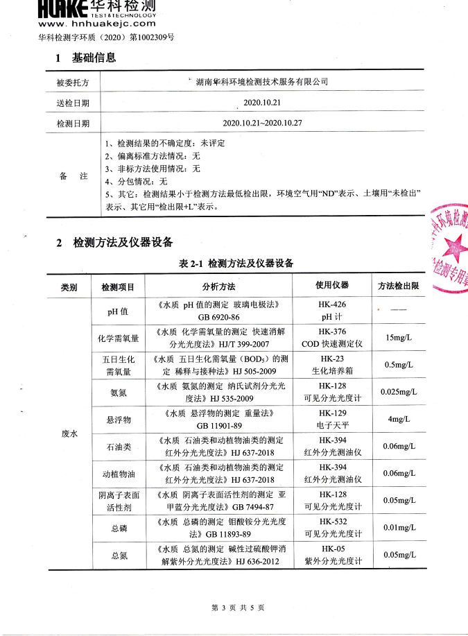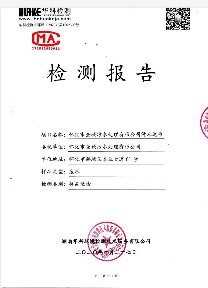 湖南怀德检测技术有限乐竞官网 2024年12月 污水出水检测报告